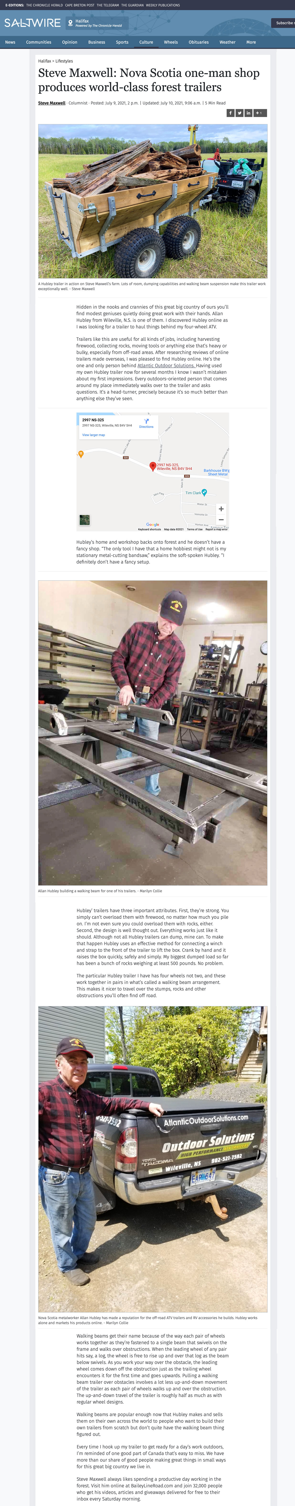 His article: Steve Maxwell: Nova Scotia one-man shop produces world-class forest trailers was published in the Chronicle Herald in July 2021.